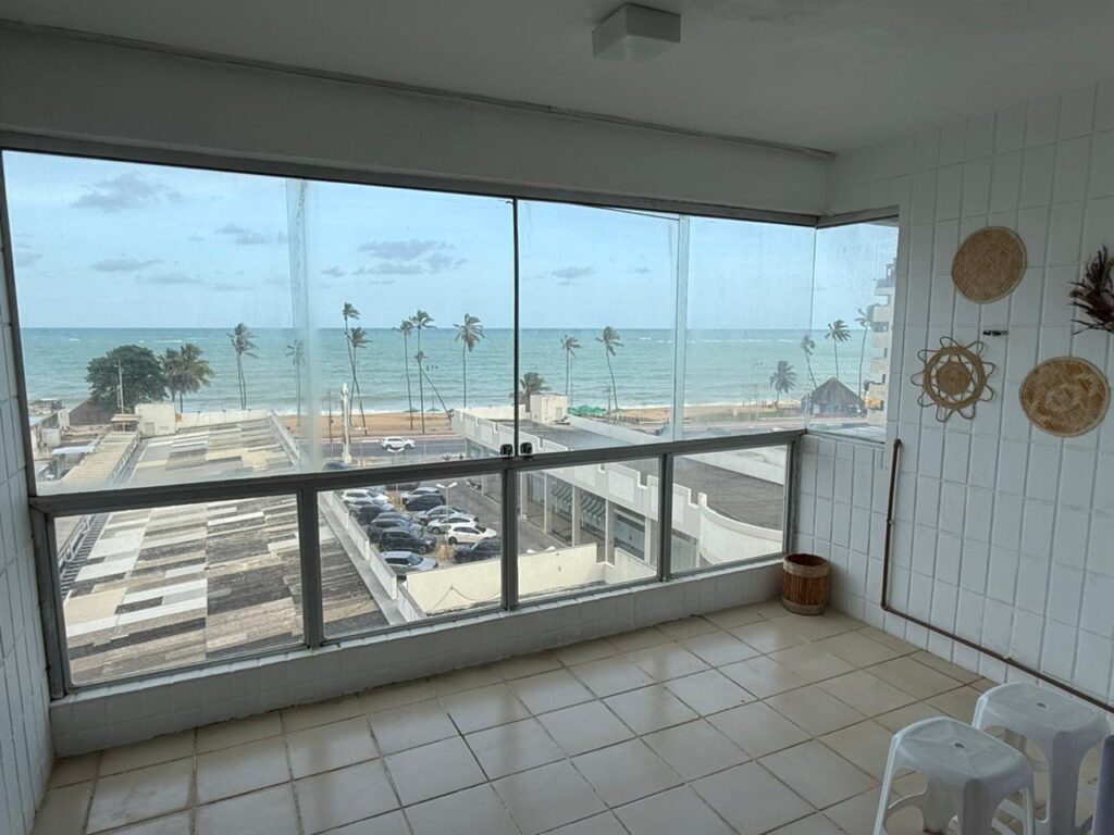 Características do imóvel: Ampla sala em L, bem iluminada e ventilada; Varanda com vista para o mar; Cozinha equipada com geladeira; Área de serviço; Quarto de serviço; Banheiro social